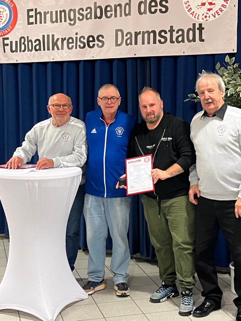Am Ehrungsabend des Fuรballkreises Darmstadt, hat Rainer Jayme die Ehrennadel in Silber fรผr seine ehrenamtlichen Tรคtigkeiten Erhalten.